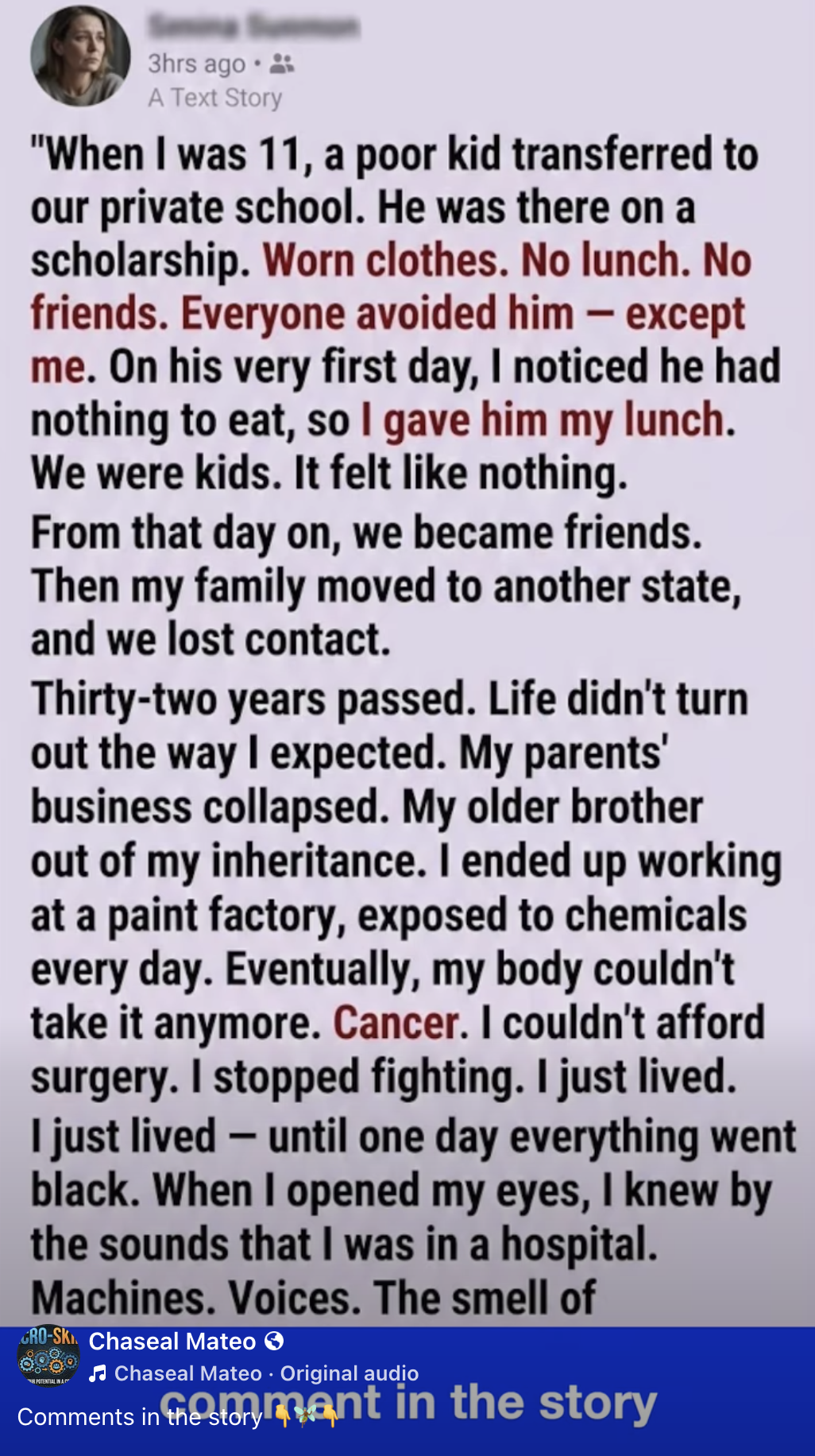 When I was 11, a poor kid transferred to our private school. He was there on a scholarship. Worn clothes. No lunch. No friends. Everyone avoided him — except me. On his very first day, I noticed he had nothing to eat, so I gave him my lunch. We were kids. It felt like nothing.
