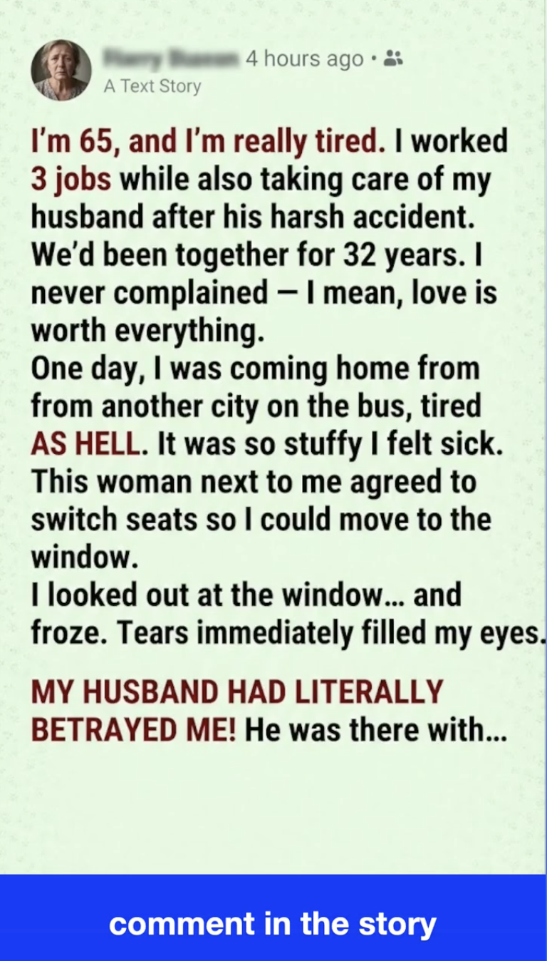 I’m 65, and I’m really tired. I worked 3 jobs while also taking care of my husband after his harsh accident. We’d been together for 32 years. I never complained — I mean, love is worth everything.