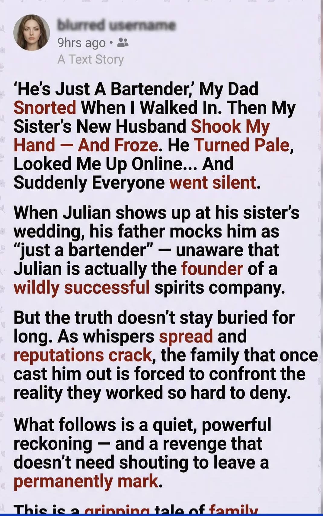 “I see you’re still wearing the same suit from your college graduation,” Arthur snorted, loud enough for the surrounding guests to hear. “I told your sister it was a mistake to invite you. We have the CEO of Northern Logistics here, and you’re probably wondering where the service entrance is so you can go back to being just a bartender.”
