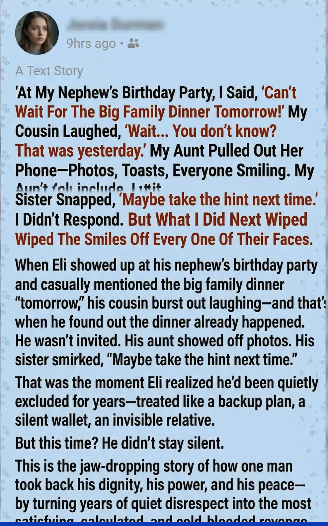 For years, Eli had been the “invisible relative.” He was the one they called when the car broke down, when the rent was short, or when a co-signer was needed. But when it came time for the champagne, he was a ghost.