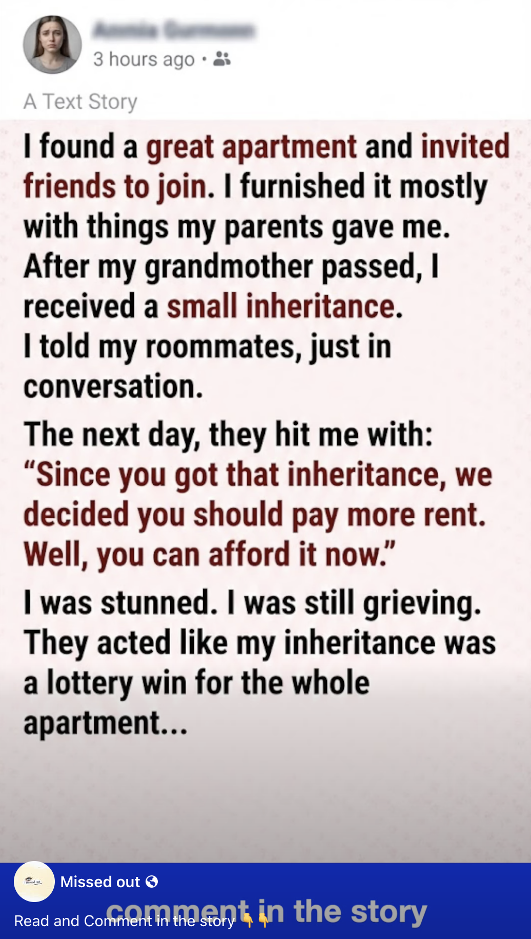 The next day, they hit me with: “Since you got that inheritance, we decided you should pay more rent. Well, you can afford it now.”