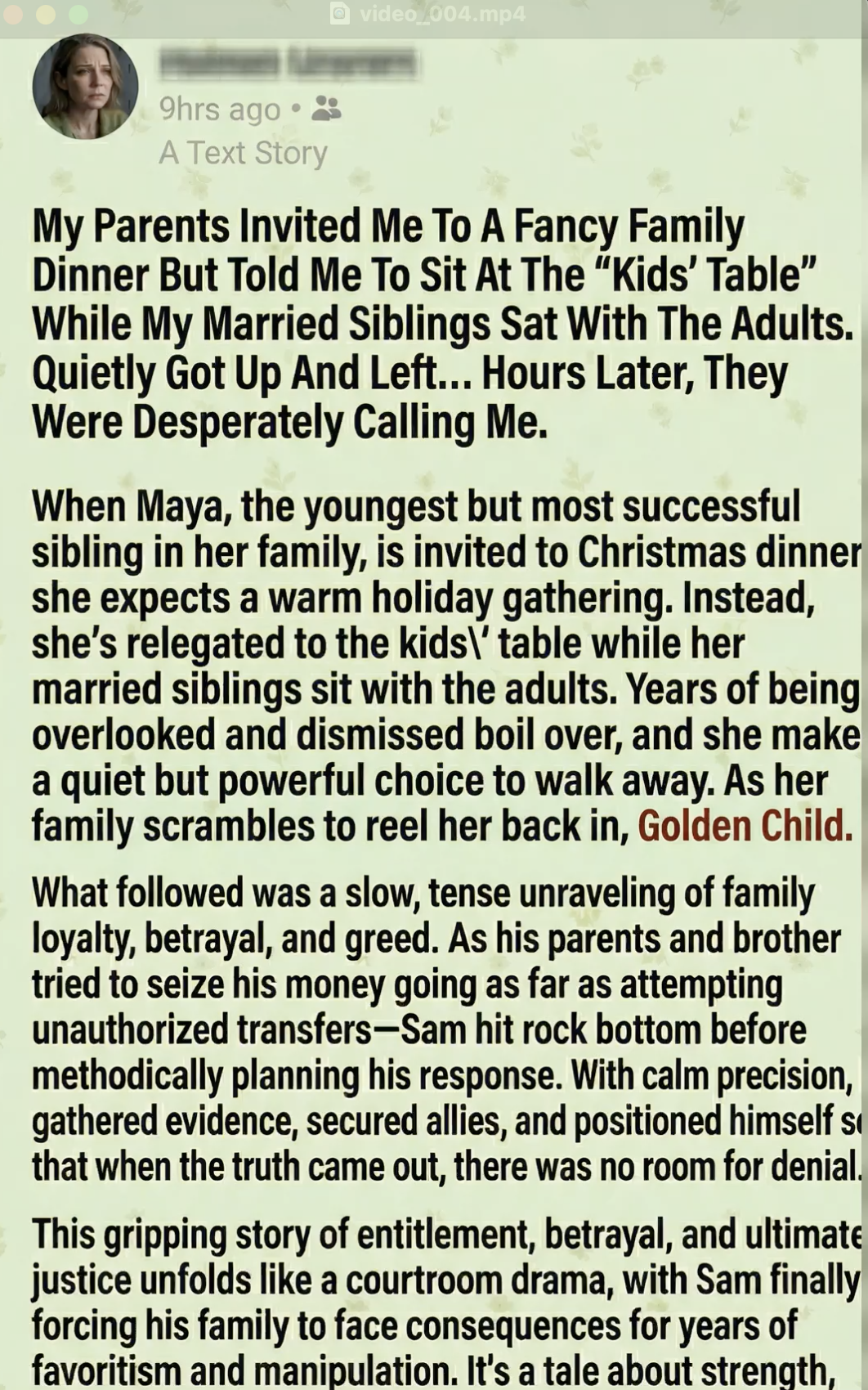 Maya looked at her brothers. They didn’t even look up. They just smirked, the “Golden Children” enjoying their status while their “little sister” was relegated to the corner.
