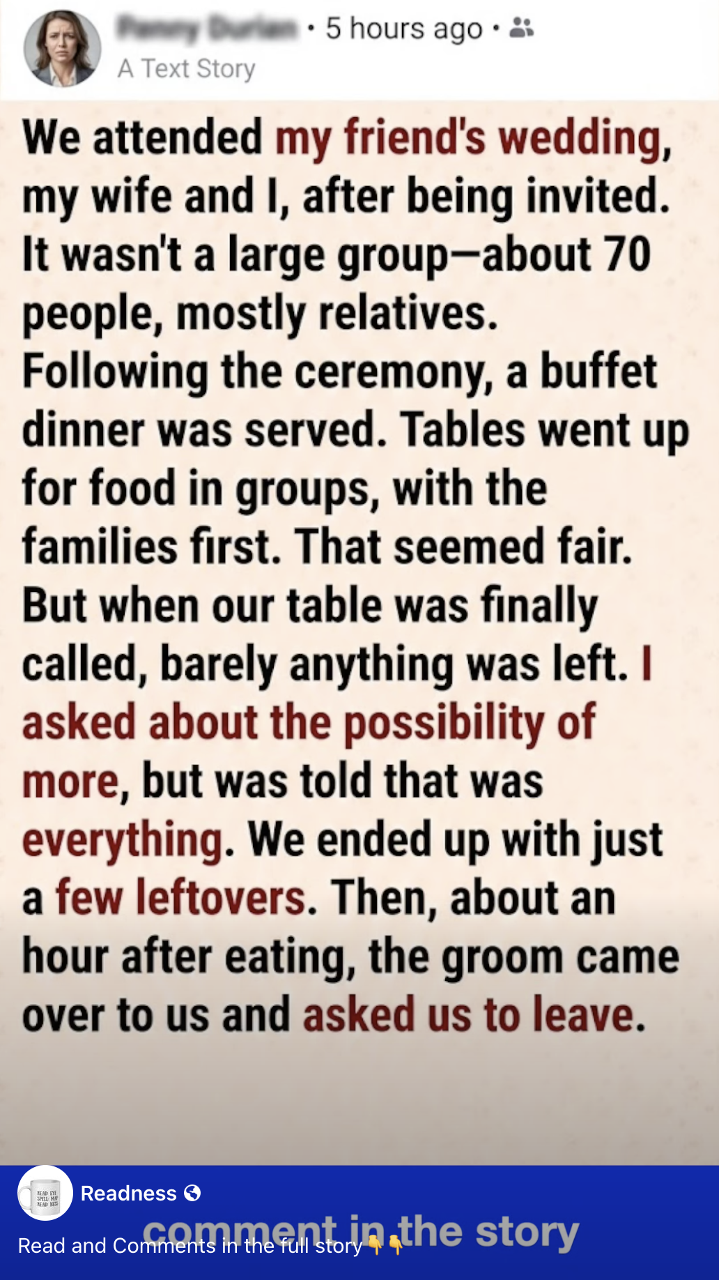 He turned to walk away, expecting us to just nod and obey. That’s when it clicked. He hadn’t “run out” of food by accident. He had ordered food for 50 people (the family) and invited 20 extra friends just to fill the seats at the ceremony, hoping we’d leave or not notice we weren’t really welcome at the reception.