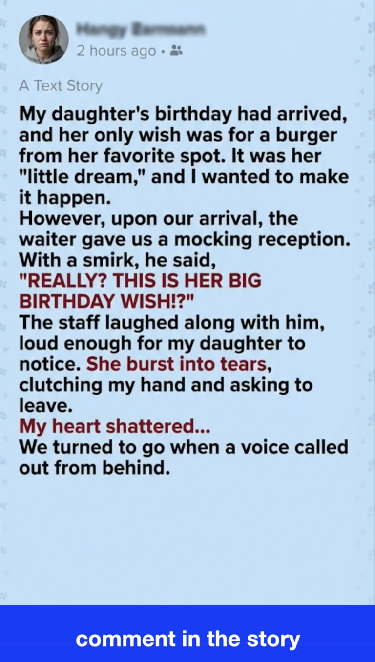 My daughter, Maya, isn’t a demanding kid. She didn’t ask for a tablet or a trip to Disney World for her 10th birthday. Her only wish was for a burger from her favorite spot—a trendy, upscale diner downtown that she had seen on TikTok. It was her “little dream,” and I wanted to make it happen, even though money was tight for us this month.