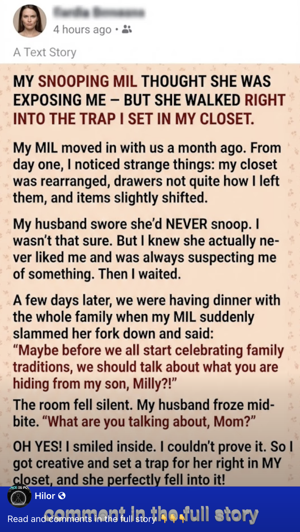 My MIL moved in with us a month ago. It was supposed to be temporary, but it felt like a sentence. From day one, I noticed strange things: my closet was rearranged, drawers not quite how I left them, and items slightly shifted. I’d find my underwear folded differently or my jewelry box unlatched.