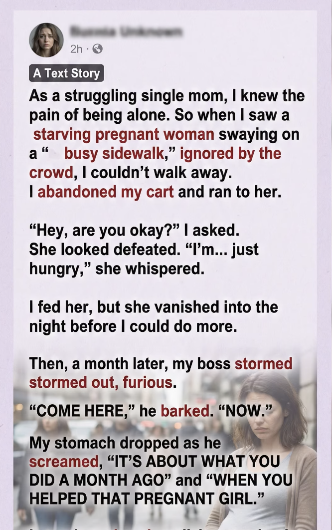 “Sir, she was pregnant and starving,” I whispered, my voice trembling. “Nobody else was stopping. I couldn’t just—”