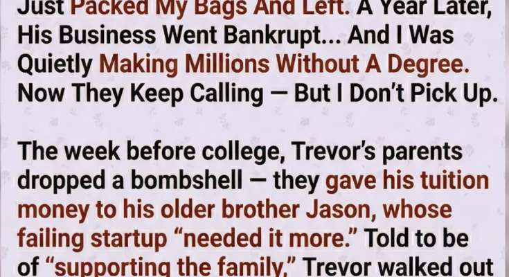I finally answered. It was Jason, his voice shaking. “Trev? Listen, man… things are bad. Mom and Dad are losing the house. The bank is at the door. We saw your name in the tech journals. You have to help us. It’s for the family, right?”