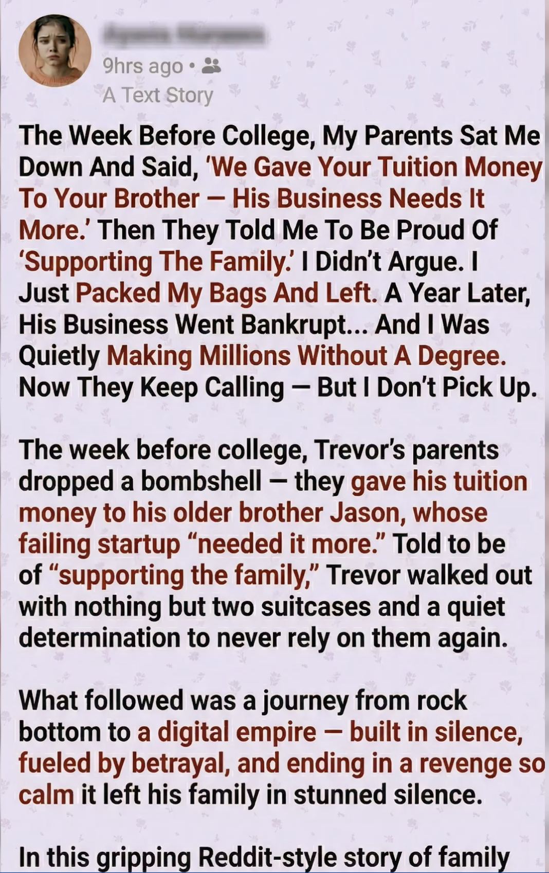 “It’s for the best, Trevor,” my father said, not even looking me in the eye. “Jason’s startup is on the verge of a breakthrough. He just needs a final push. Your tuition fund is the only way.”