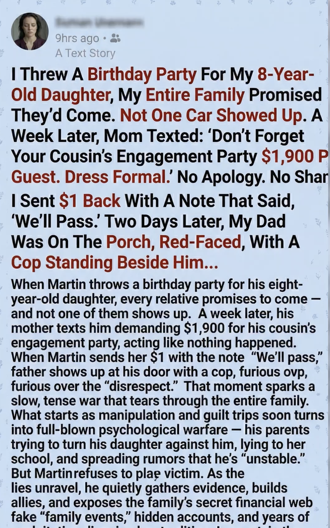 The officer looked confused, but I wasn’t. See, my family didn’t just want $1,900. They were using these “family events” to launder money from a trust fund my grandfather left for Lily—a fund I had recently frozen after realizing they had been draining it for years to fund their “high-society” lifestyle.