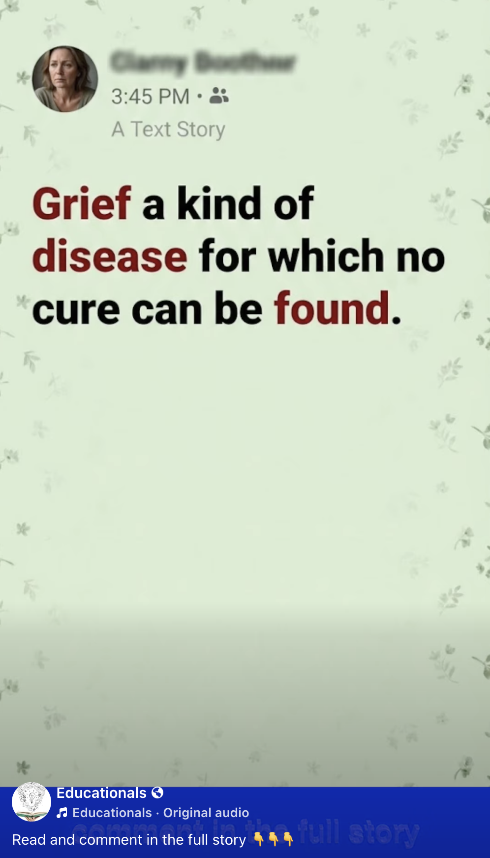 “Stop fighting it,” the letter continued. “You can’t fix this. You can’t meditate it away. I read a quote once that stuck with me: Grief is a kind of disease for which no cure can be found. And that’s okay. The pain means it was real. The pain means I mattered. Don’t try to cure it. Just let it live with you. Make room for it. Don’t let anyone tell you to ‘get over’ me. I love you, forever.”