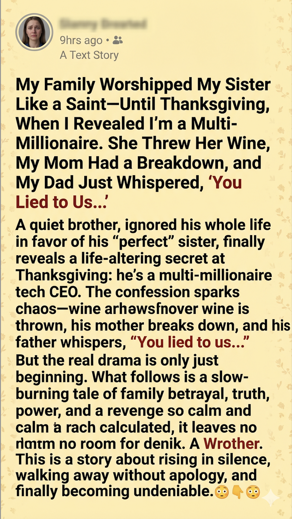 My father leaned back, his voice a broken whisper. “You lied to us. You let us think you were nothing.”