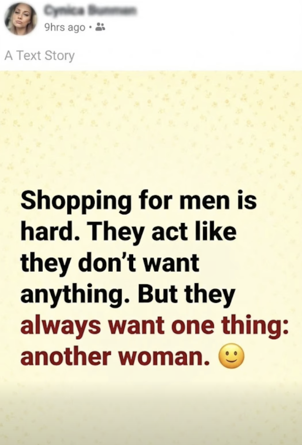 I realized then that Greg wasn’t humble. He just didn’t want a gift from me because he was already spending our savings on someone else. But they always want one thing: another woman.