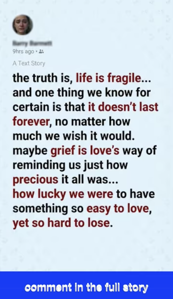 I realized today, she wrote, that the pain you might feel later is just the receipt for the joy we have now. Maybe grief is love’s way of reminding us just how precious it all was.