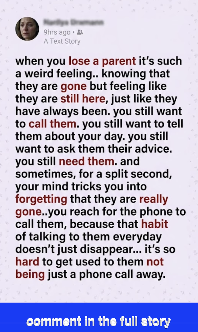 He stared at the silent screen, his breath hitching in his throat. When you lose a parent it’s such a weird feeling. It wasn’t a constant, screaming pain. It was a surreal, disjointed reality where they were knowing that they are gone but feeling like they are still here, just like they have always been.
