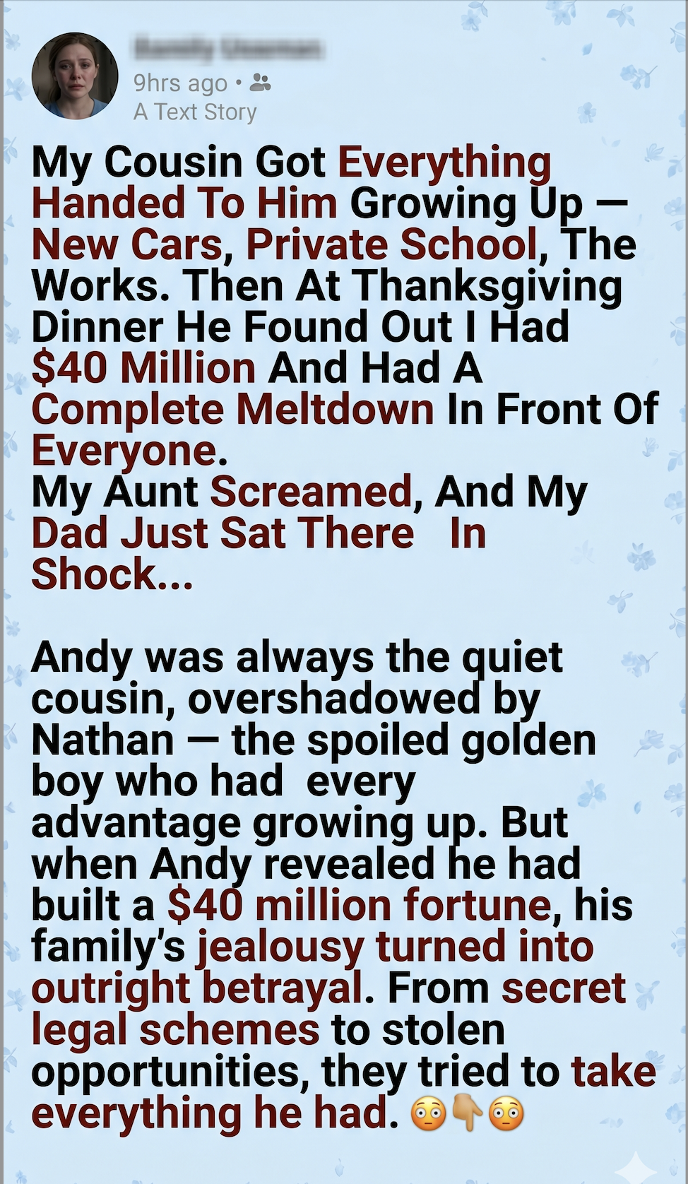 Growing up, my cousin Nathan was the sun, and I was the damp basement. While my parents struggled to keep the lights on, my Aunt Linda—my dad’s older sister—made sure Nathan wanted for nothing. New BMW for his sixteenth birthday? Done. Ivy League tuition paid in cash? Obviously.
