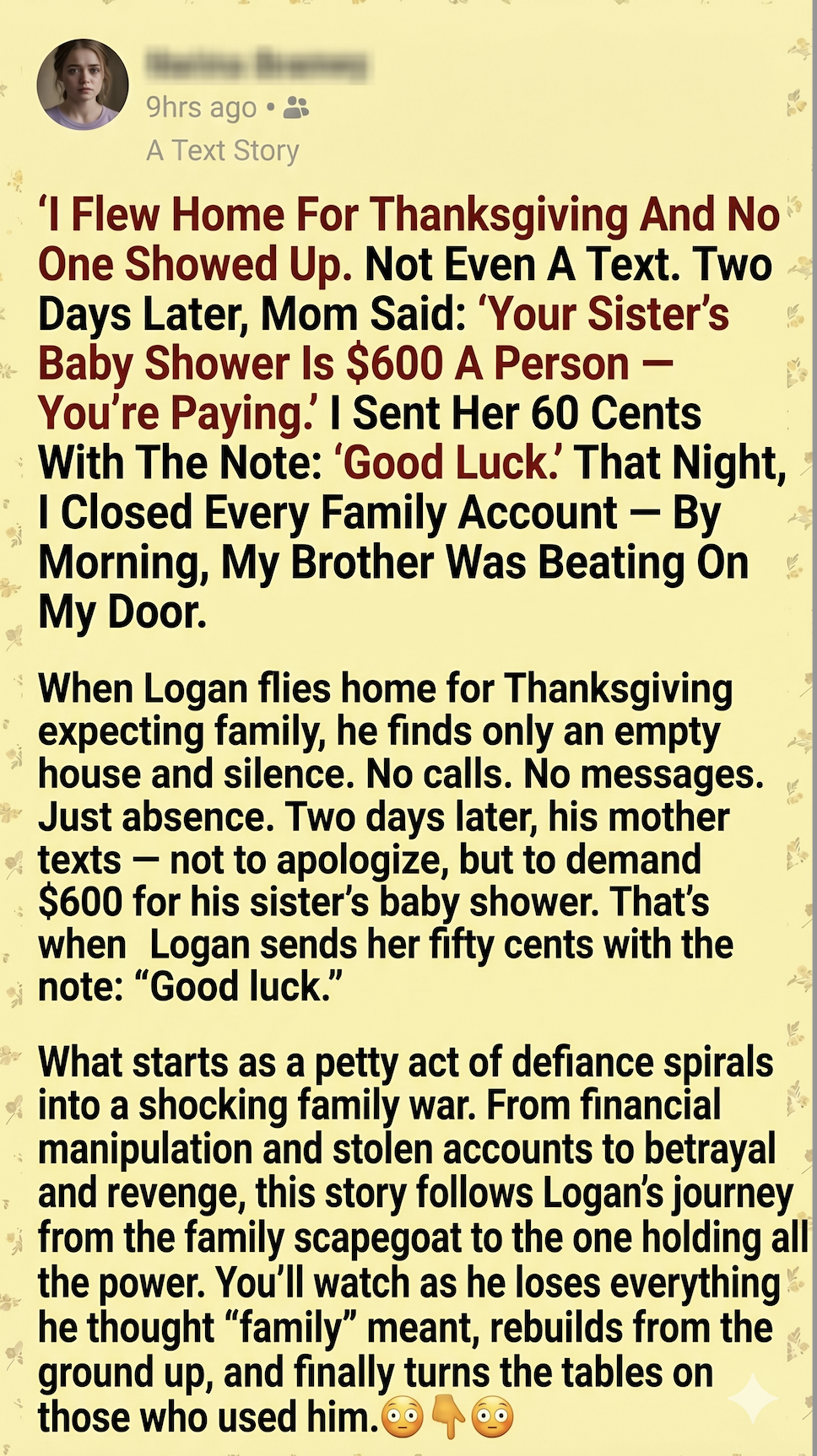 I stood on the porch of my childhood home, two suitcases at my feet and a $1,200 cross-country plane ticket in my pocket. The windows were dark. The “Welcome” mat was dusty. I knocked for ten minutes before realizing the truth: my family hadn’t forgotten I was coming for Thanksgiving; they just didn’t care enough to be there.