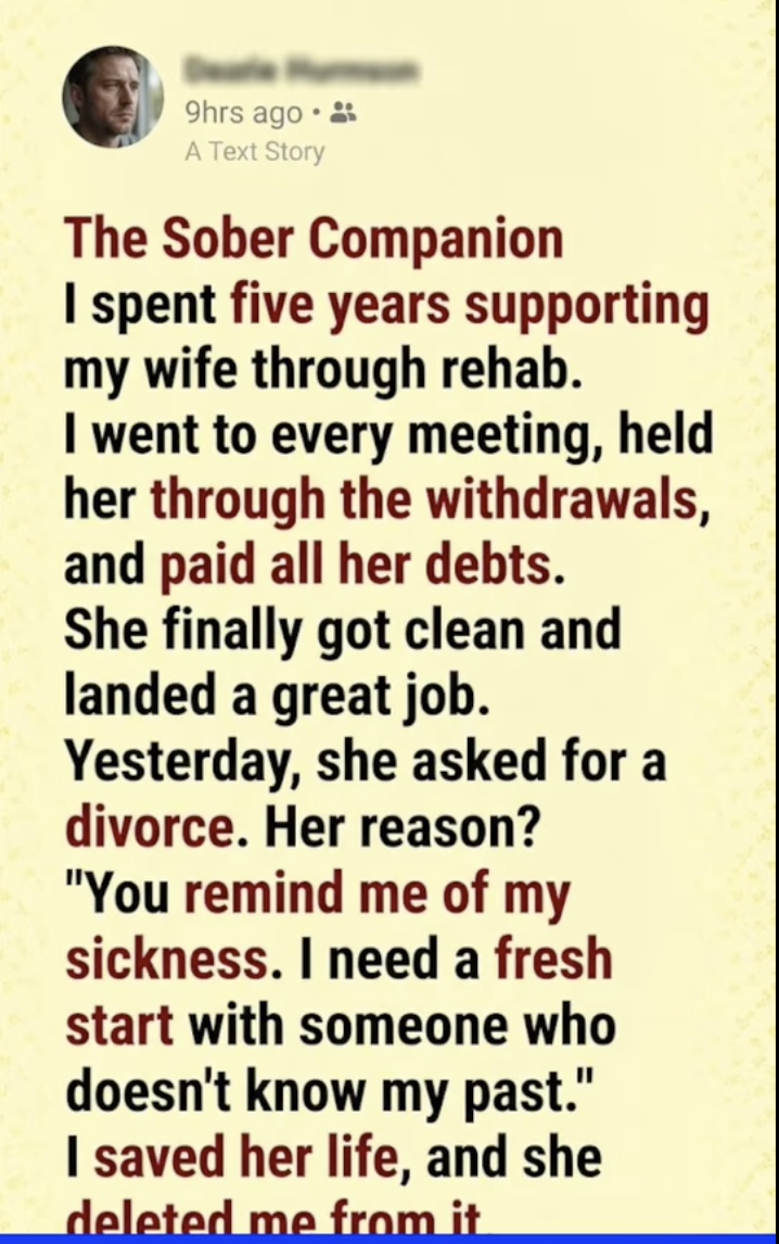 The noise of the restaurant seemed to vanish. I stared at her, trying to process the words. For half a decade, my entire existence had been a support structure for hers. I spent five years supporting my wife through rehab. I had been the designated driver, the nurse, the bank, and the punching bag.