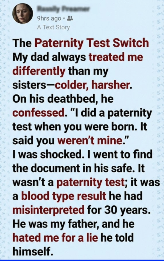 It wasn’t a paternity test; it was a blood type result he had misinterpreted for 30 years.