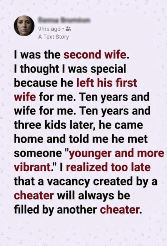 As he walked out the door to start his new life, I didn’t feel like a victim. I felt like a placeholder who had finally served her term. I was the second wife. And somewhere out there, the third wife was already celebrating her victory, completely unaware that she was just the next stop on a schedule I had foolishly helped create.