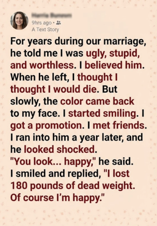 I watched the realization hit him. He wasn’t the prize I had lost; he was the anchor I had cut loose. I turned back to my friend and continued laughing, leaving him standing there with the heavy realization that he had been the only thing dragging me down all along.