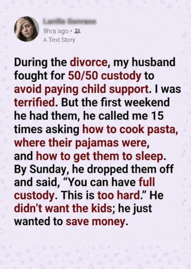 I walked out of the courthouse feeling sick. I knew why Greg was doing this. It wasn’t love. My husband fought for 50/50 custody to avoid paying child support. He had done the math: if he had them half the time, his monthly payments to me would drop to almost zero. He viewed our children as line items on a spreadsheet to be minimized.