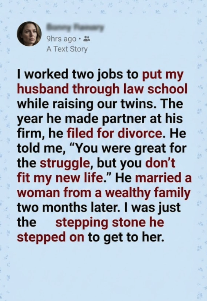 I sat at my kitchen table, realizing the brutal truth of our marriage. I hadn’t been his partner. I had been his ladder. I was just the stepping stone he stepped on to get to her. He had used me to climb out of the mud, and once he reached the dry land of wealth, he wiped his feet on me and walked away.