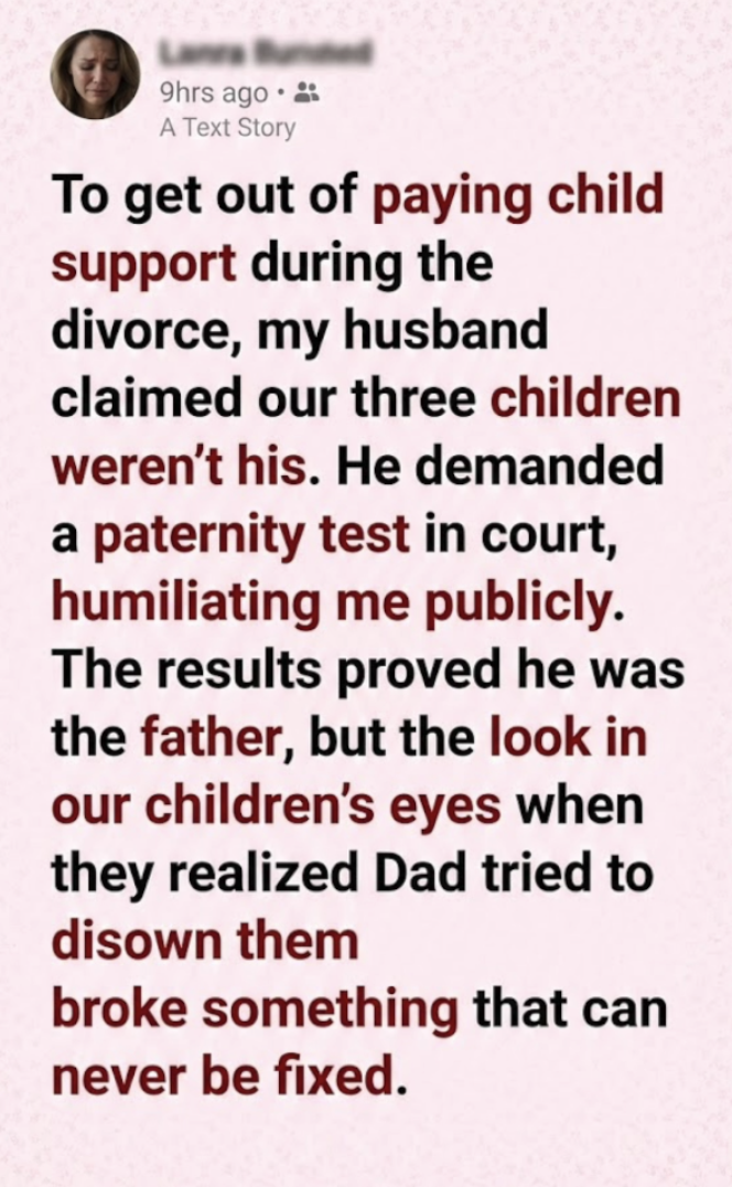 “To get out of paying child support during the divorce, my husband claimed our three children weren’t his“.