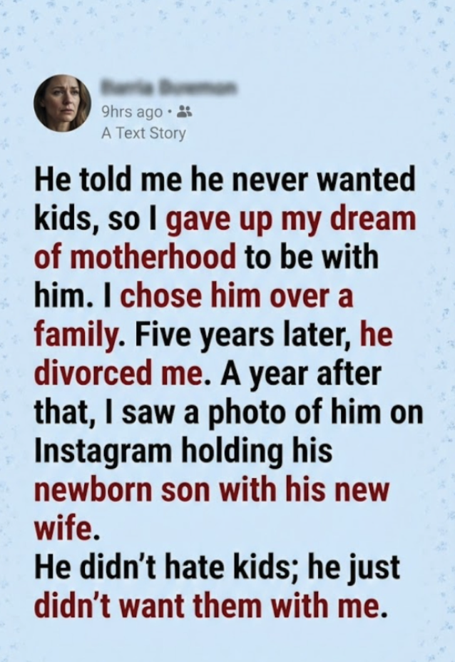 For the next few years, I defended our choice. When my mother asked for grandkids, I told her we were “career-focused.” When friends brought their babies over, I smiled and said we preferred our quiet weekends. I buried my longing under expensive vacations and a spotless, white-carpeted house. I chose him over a family.