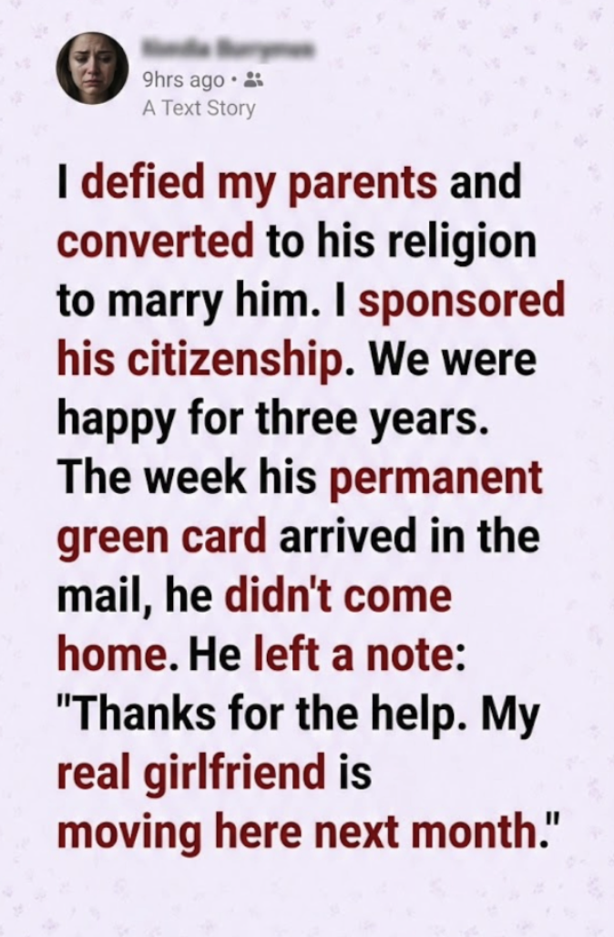 I collapsed onto the bed. He hadn’t just used me for a visa; he had used me as a placeholder. He had an entire other life, a “real” love, waiting in the wings while I played the role of the useful idiot who could navigate the bureaucracy. I had sacrificed my family and my identity to save a man who was only waiting for the ink to dry so he could replace me with the woman he actually wanted.