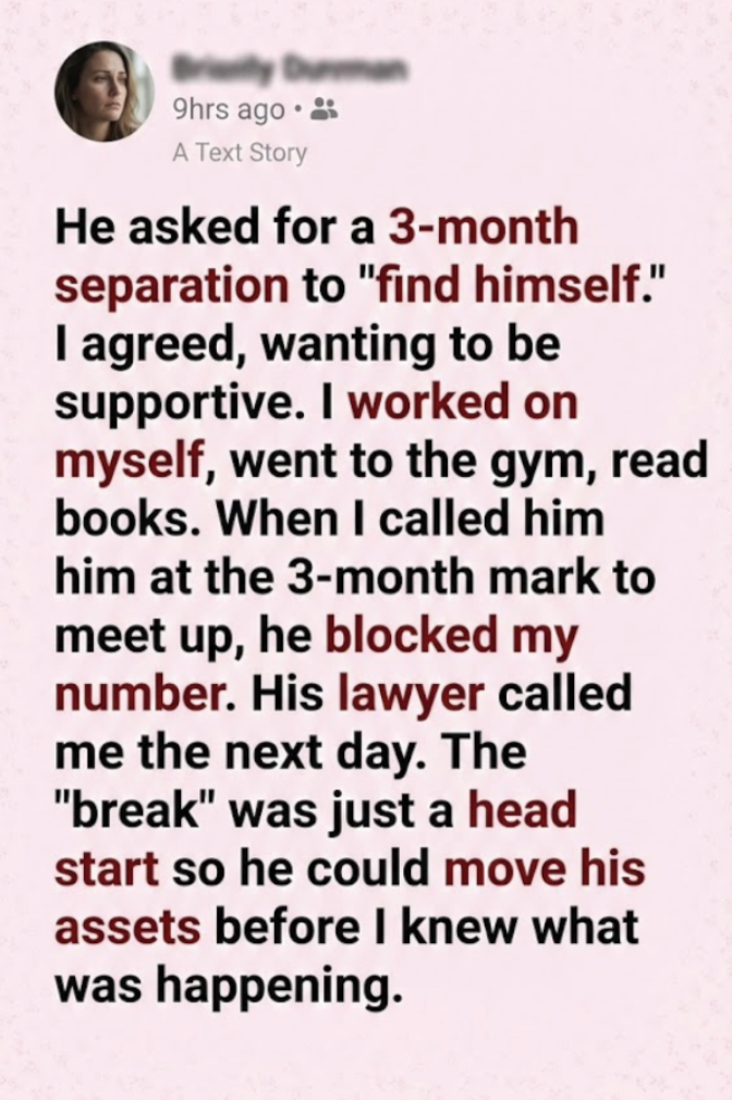 While I was reading self-help books and praying for his soul, he was meeting with accountants and wire-transferring our life savings into offshore accounts I couldn’t touch. He hadn’t needed space to find himself; he needed time to hide the money. I had given him a ninety-day lead in a race I didn’t even know we were running, and by the time the starting gun finally fired for me, he was already at the finish line, laughing.
