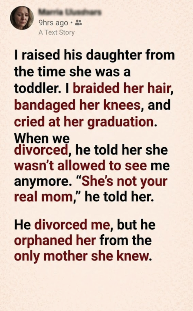 He divorced me, but he orphaned her from the only mother she knew.