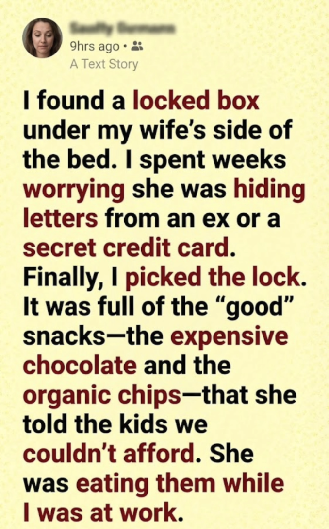 My mind immediately went to the darkest corners of marital paranoia. I found a locked box under my wife’s side of the bed.