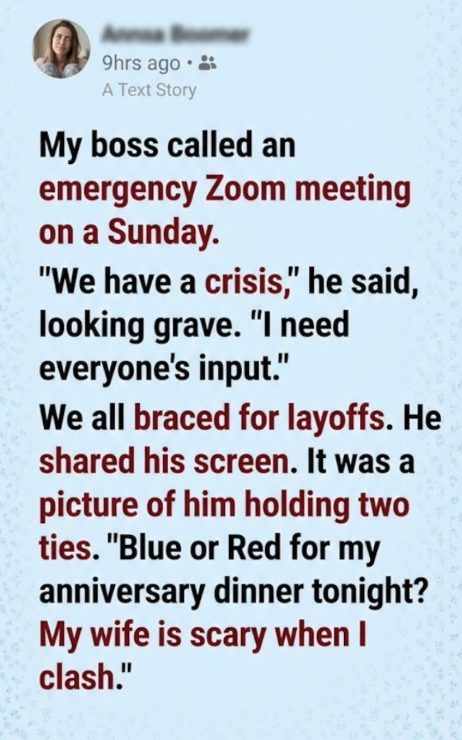 I scrambled to my laptop, throwing a blazer over my pajamas. I logged into Zoom, my heart pounding in my ears. The gallery view was a mosaic of terrified faces—colleagues in hoodies, colleagues with wet hair, all of us looking like we were waiting for the executioner.