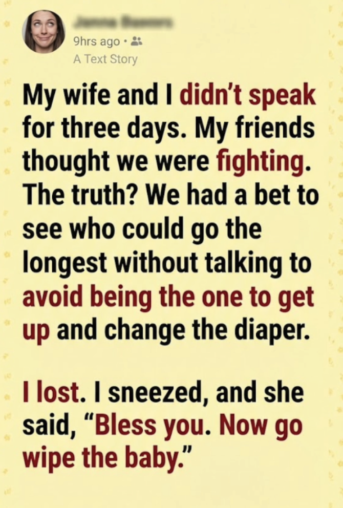 My wife and I didn’t speak for three days, not out of anger, but out of sheer, stubborn survival instinct. It started on Friday night with a simple challenge. The baby had just eaten. We both knew what was coming.
