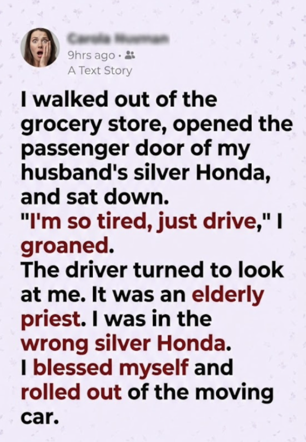 I froze. I had just commanded a servant of God to be my chauffeur. I was in the wrong silver Honda.